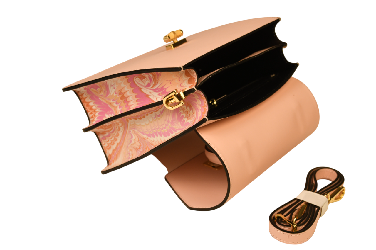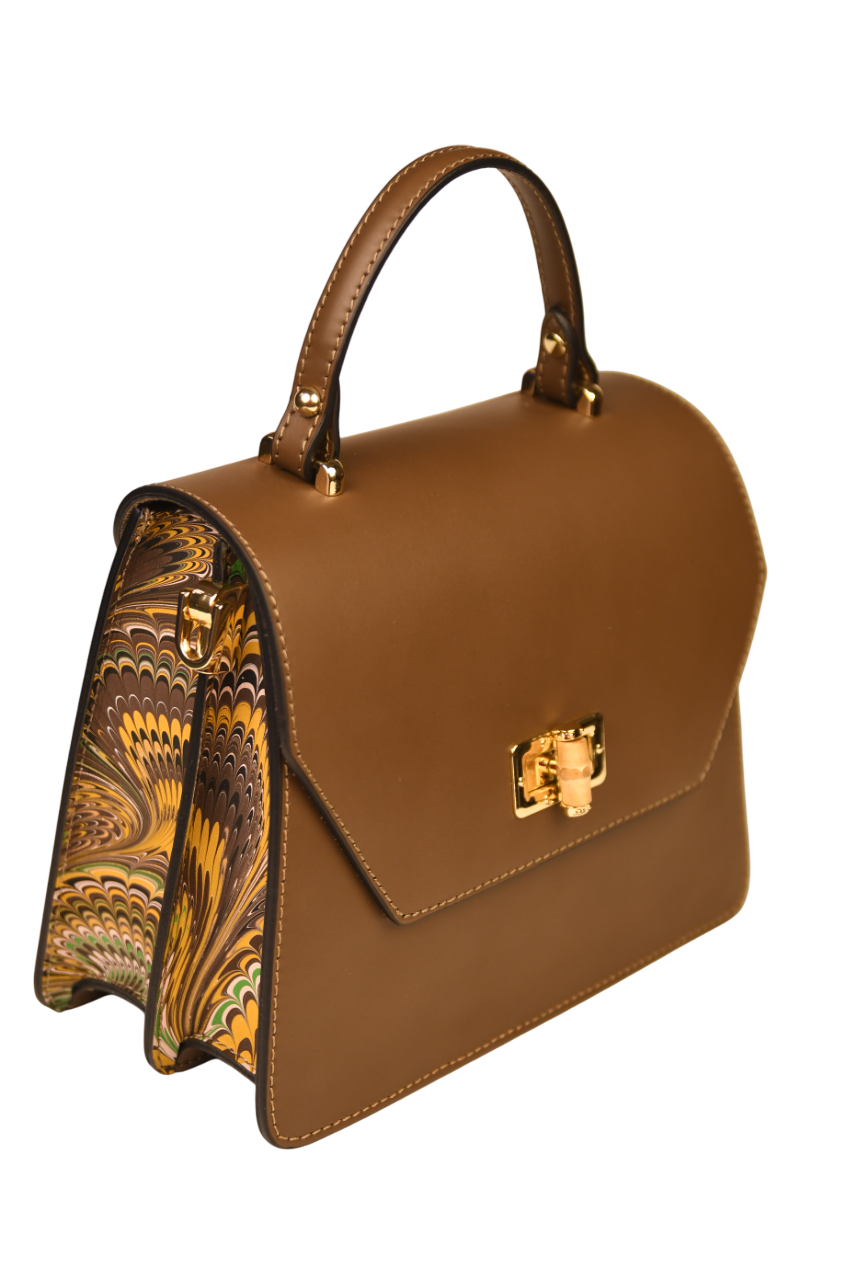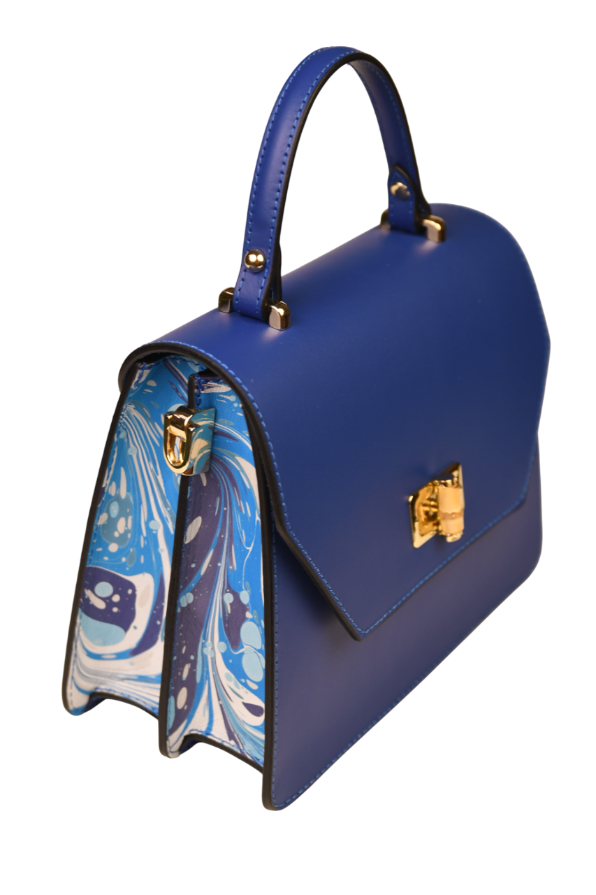 Elegant Women’s Bag with Marbled Leather Decorations by Riccardo Luci. The design, decorations, high-quality materials, and meticulous attention to detail make this an original and refined accessory. The production process, entrusted to highly skilled Tuscan leather artisans, is entirely handcrafted with exceptional care.