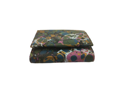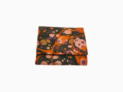 The standout feature of this accessory is its exquisite marbled leather inserts, artisanally crafted exclusively by Riccardo Luci in his workshop. Marbling is an ancient decorative technique typical of Renaissance Florentine bookbinding, traditionally performed only on paper. Riccardo Luci has adapted this artisanal method to leather, making each item in this collection unique and impossible to replicate. Each piece crafted with this technique is exclusive and truly one of a kind.