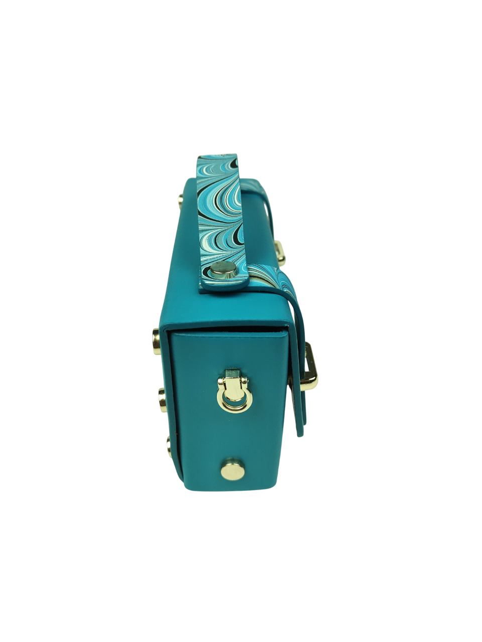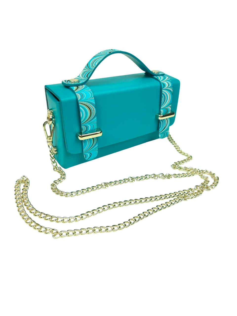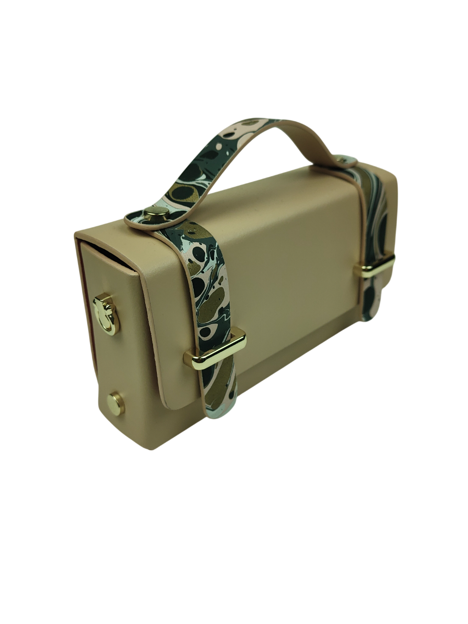 La struttura compatta è perfetta per l’uso quotidiano o come accessorio distintivo per occasioni speciali. La pelle marmorizzata, con il suo motivo originale e sofisticato, creata a mano da Riccardo Luci, rende ogni borsa unica e irripetibile.