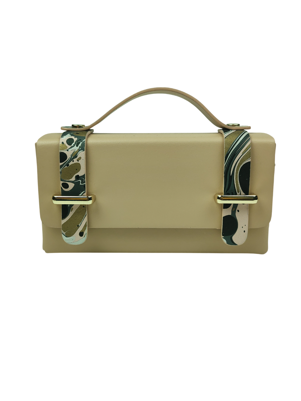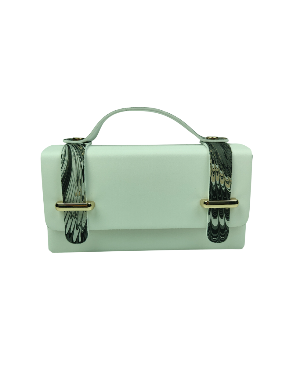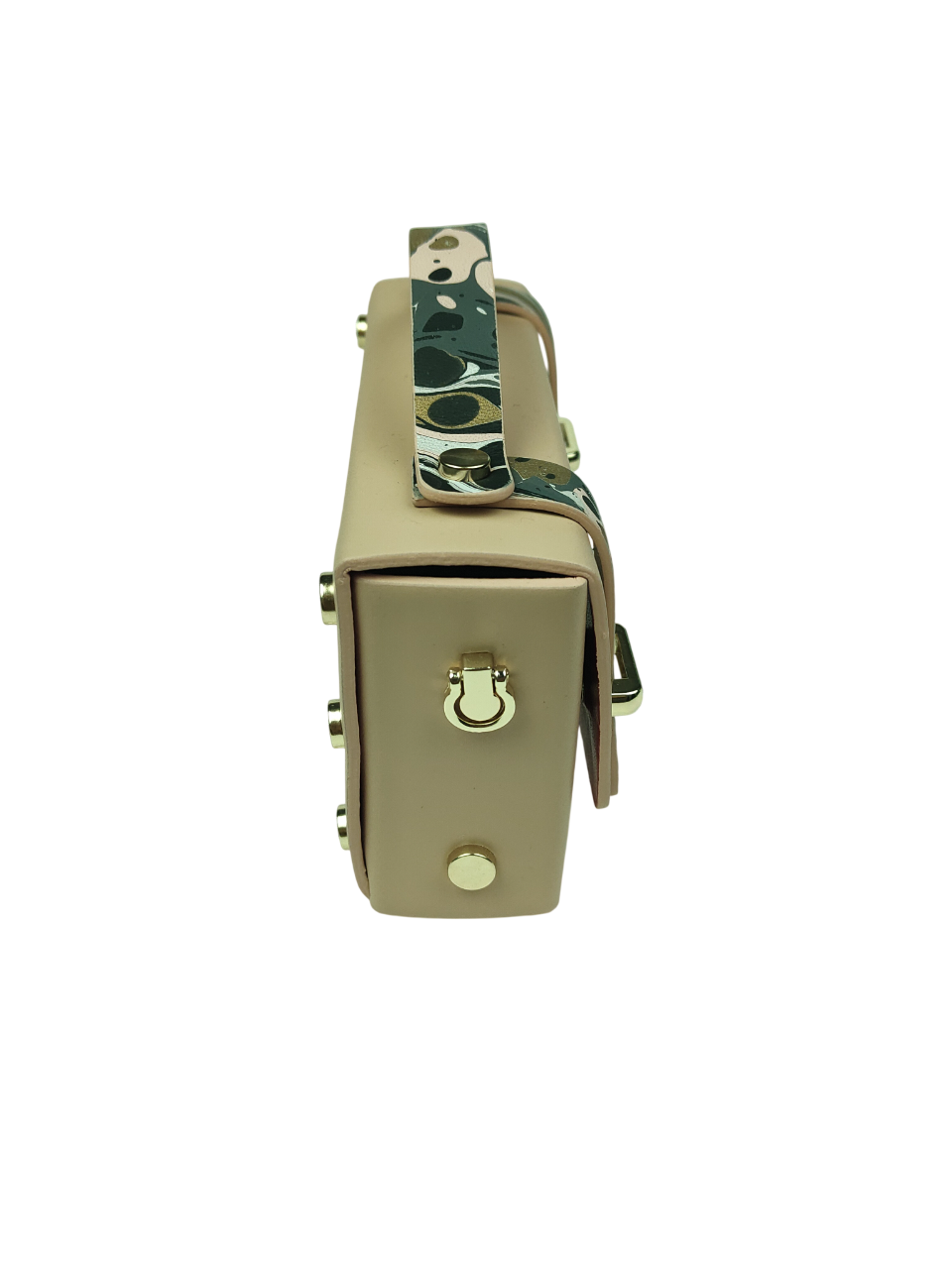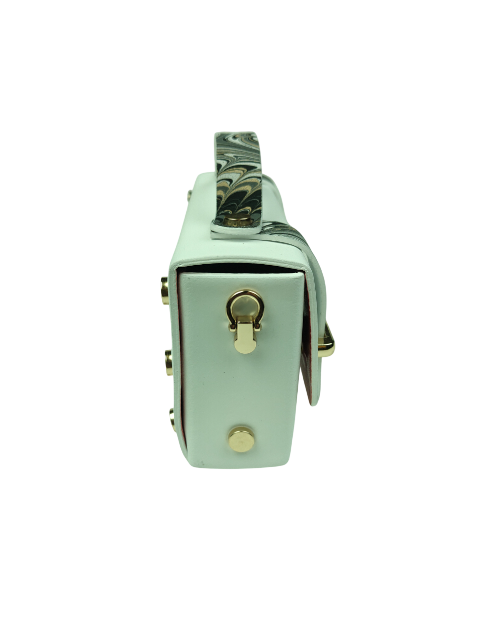 Eleganza compatta e carattere artistico si fondono nella nuova borsetta Bijoux di Riccardo Luci, un accessorio dallo stile sofisticato e distintivo. Realizzata artigianalmente in pelle di alta qualità, questa mini-bag presenta dettagli in pelle marmorizzata fatto a mano, che creano un motivo unico e affascinante su ogni modello.