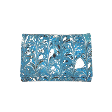 Portafoglio artigianale in pelle decorata con la tradizionale tecnica della marmorizzazione fiorentina. Comoda chiusura esterna con bottone a clip. Suddivisione interna in una tasca XL porta banconote e 2 tasche portadocumenti. Una tasca portamonete con chiusura a snap (bottone a pressione). 6 slot portacarte. Dimensioni: 11×10 cm. Accessorio di fine artigianato made in Italy.
