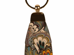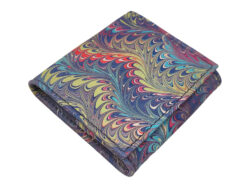 La caratteristica principale di questo accessorio è la sua realizzazione in pelle marmorizzata, creata in modo artigianale esclusivamente da Riccardo Luci nella sua bottega. La marmorizzazione è un’antica tecnica di decorazione tipica della legatoria fiorentina rinascimentale che normalmente può essere eseguita solo su carta. Riccardo Luci ha trasferito questo metodo di decorazione artigianale anche sulla pelle, rendendo ogni accessorio di questa linea unico ed irripetibile. Per questo ogni oggetto realizzato con questa tecnica è esclusivo, impossibile da ricreare in modo uguale.